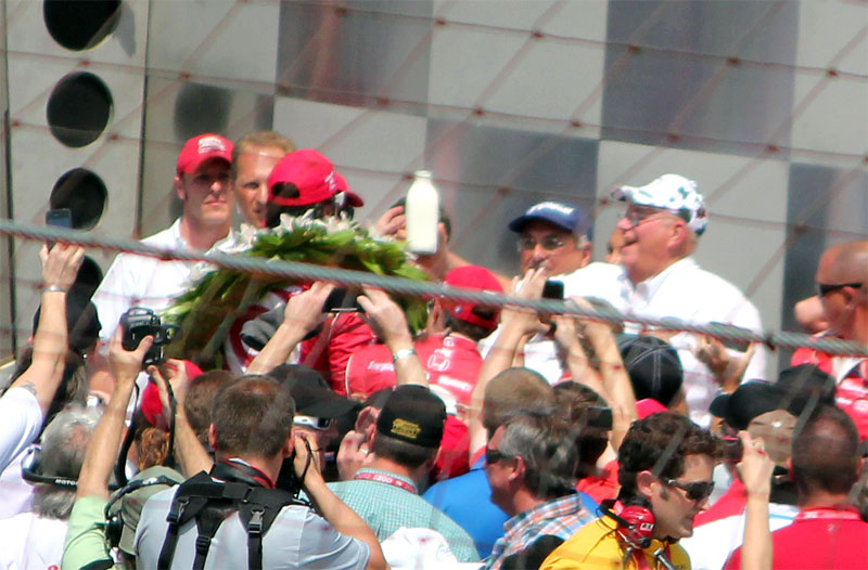 In traditional fashion, Franchitti celebrated his victory with the milk drink (and dunk) to the cheers of the crowd and throngs of photographers as well as national and international media.