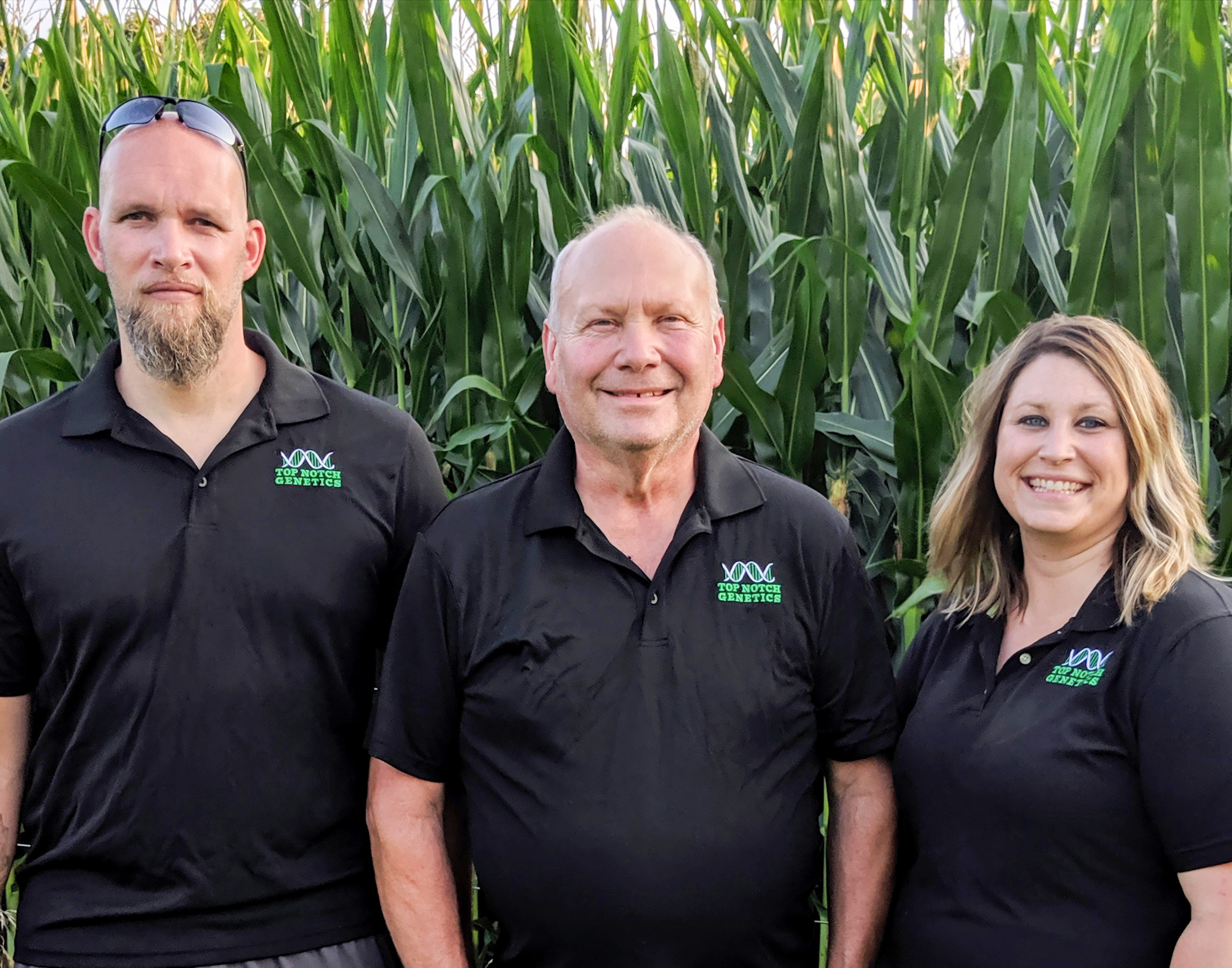 Collaborating with her father Ken Reist and righthand man in bull research and selection Brandon DeLong, Kendra Nagle is bullish on dairy herd progress. They launched Top Notch Genetics, LLC in March 2018. Photo by Rhoda Reist