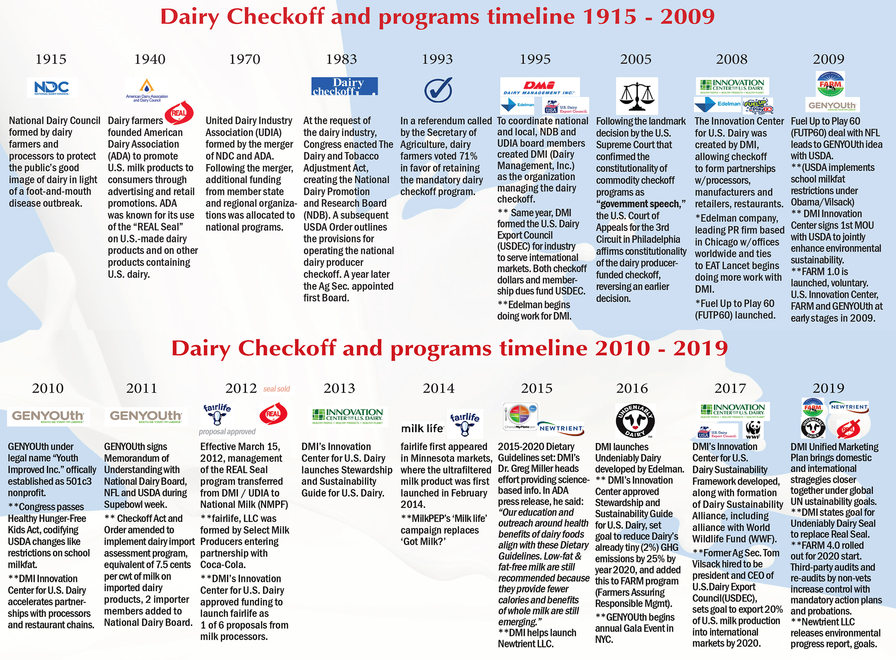 As the accompanying timeline illustrates, a lot has been going on since DMI was established in 1995 to manage the checkoff and develop unified marketing plans. That was also the year the U.S. Dairy Export Council (USDEC) was created.
