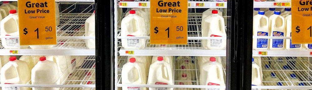 Explaining that the extreme loss-leading for real dairy milk ($1.50, $1.25, 99 cents/gal) pushes stress back through the supply-chain and conditions consumers to disrespect the most nutritious option — that admittedly most shoppers still put in their cart — my explanation was met with a shrug, and this reminder: “It’s got to be moved, and we eat the loss, and the only thing more expensive than selling milk cheap is throwing it away.”