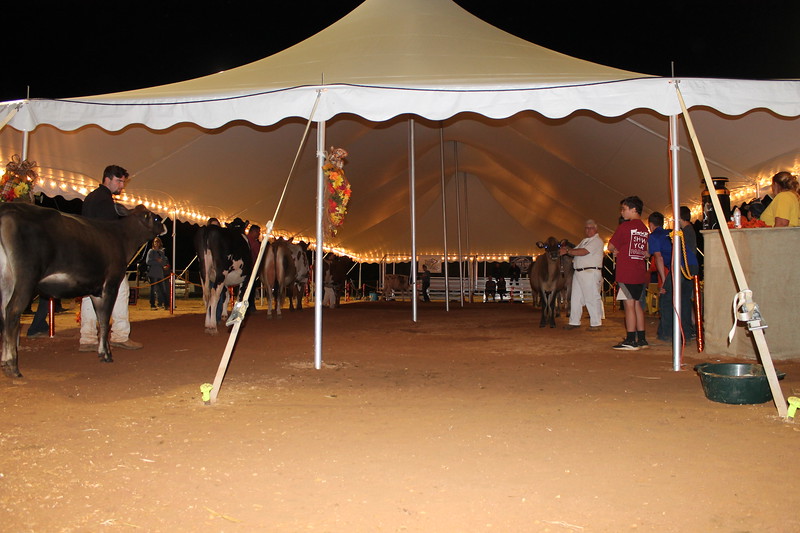 ‘Friday night lights’ under the tents at the Ag Center in Madison, Georgia. A committee of five, headed by Carol Williams and Jay Moon spent three months planning and pulling off the first annual Dairyland Classic Sept. 30-Oct. 3, attracting roughly 80 exhibitors from 8 states, 222 entries and 176 show animals arriving at the barn in five breeds for the opportunity to show and enjoy plenty of ‘southern hospitality.’ Photo by Katie Williams