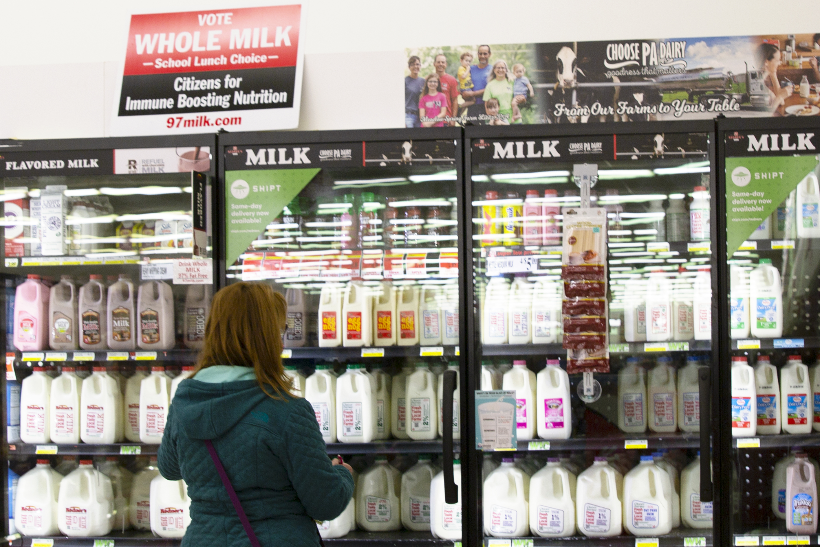 During an interview at the dairy case in the Redner’s Sinking Spring store this week, the impact was clear: Whole milk in the jug is very much the star of the show.