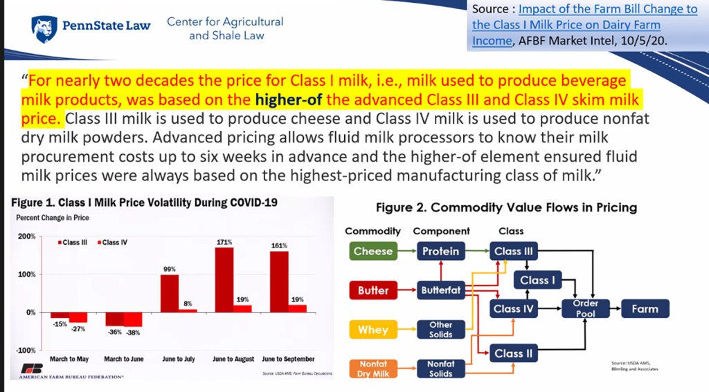A Penn State Ag Law Center webinar already planned on FMMOs this week, turned into a hot topic. Brook Duer, staff attorney for the center and moderator asked webinar guest Dr. Andrew Novakovic, Cornell professor emeritus about the specifics of the NMPF proposal.