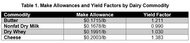 The mover would be linked to the Class III announced skim price, not the advance skim pricing factor. The proposal includes an adjuster that would be revised annually in September by USDA for the forthcoming calendar year. It would equal the average of the monthly differences between the higher of Class III and IV skim milk prices, and the Class III skim milk price during the prior 26 months.