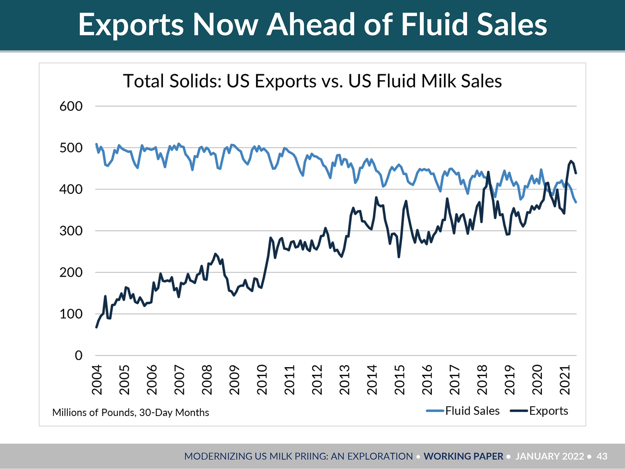 Fluid milk sales are declining and being overtaken by the increasing export category — leading processors to lose interest in FMMO participation, he said.