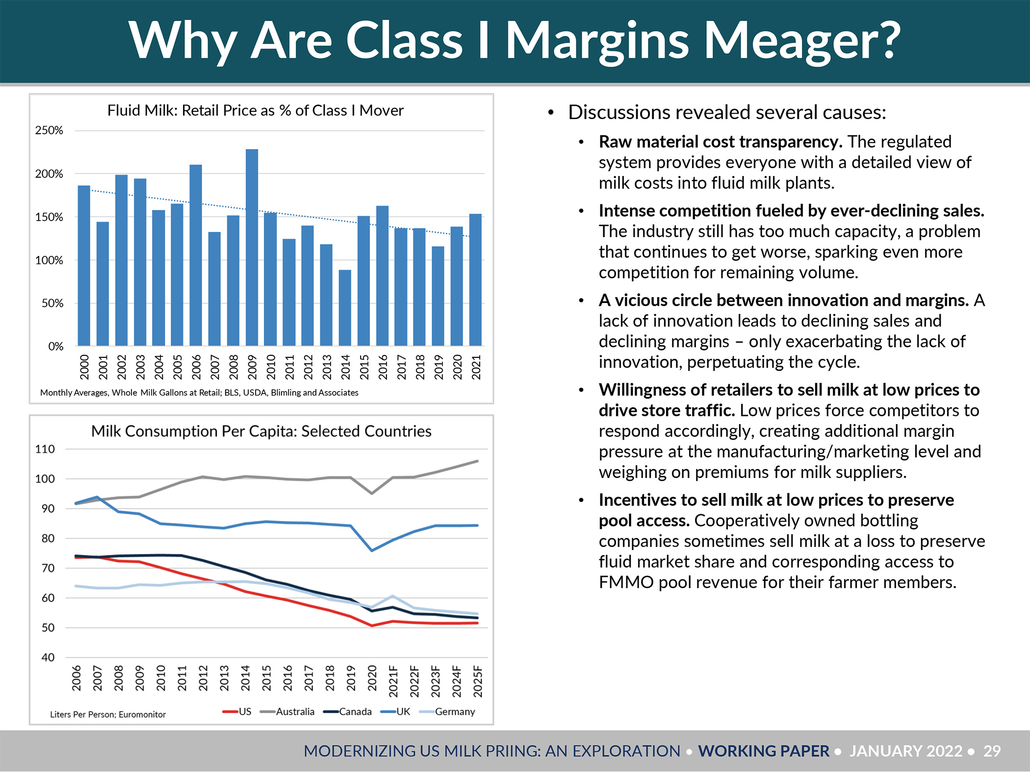 He referenced a working paper about modernizing U.S. milk pricing and how pricing is done in other countries. Bozic authored the paper together with Blimling and Associates, and it was released at the IDFA convention in January. It is available and anticipating feedback at https://www.idfa.org/wordpress/wp-content/uploads/2022/01/Modernizing_US_Milk_Pricing_Working_Paper_012522.pdf