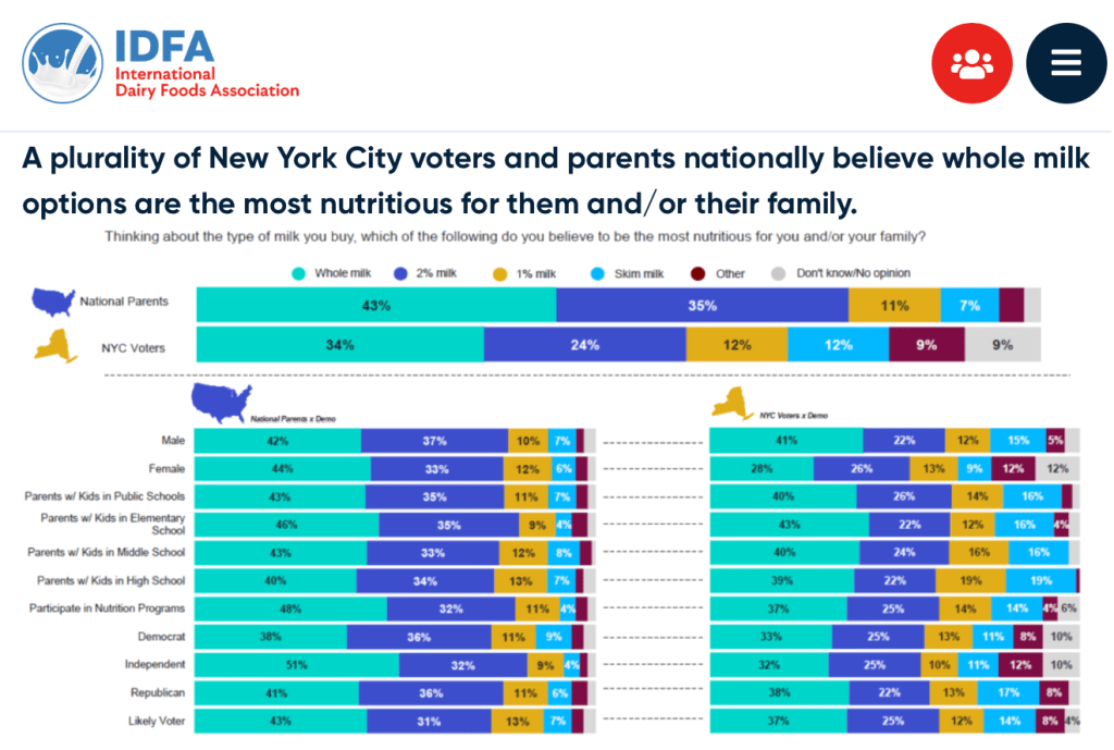 “Voters in New York City and across the country widely support offering low-fat (1%) flavored milk in public school meals,” the IDFA press release proclaimed about the new Morning Consult national tracking poll they commissioned.