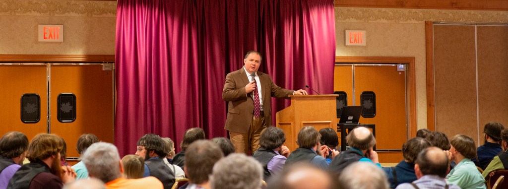 John Lawrence speaking to farmers at a winter meeting two weeks before he introduced HB 2397 Whole Milk for Pennsylvania Schools with 31 cosponsors.