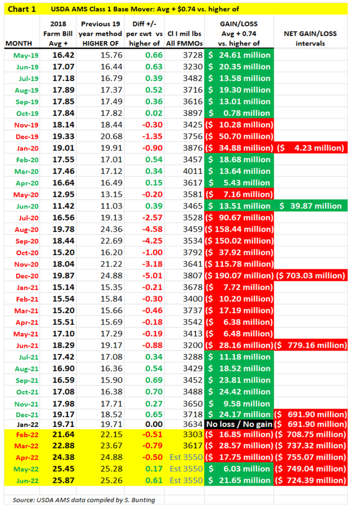 Since implementation in May 2019, the new formula has been negative more months than positive (18 of 38 months) for a net loss in Class I value of over $725 million from May 2019 through June 2022.