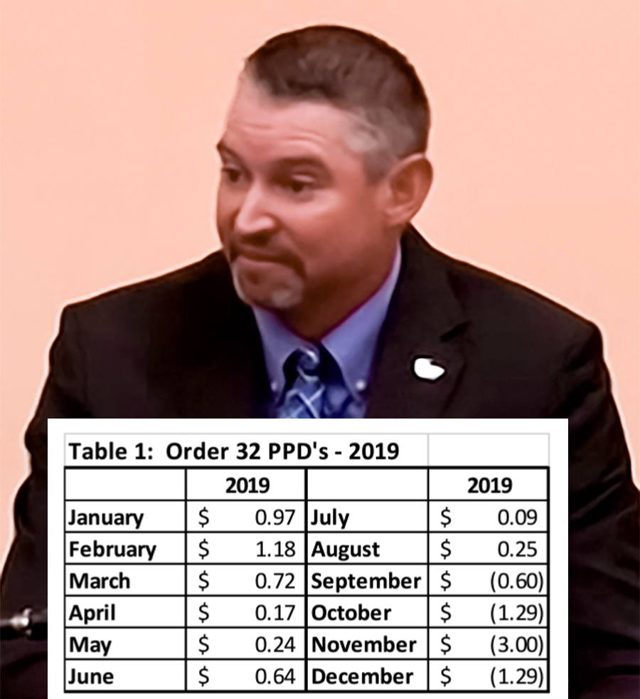 Henrichs included a chart in his testimony showing these PPD swings in his milk marketing area (Order 32) from January through December 2019, before and after the Class I mover change a year before the pandemic hit.