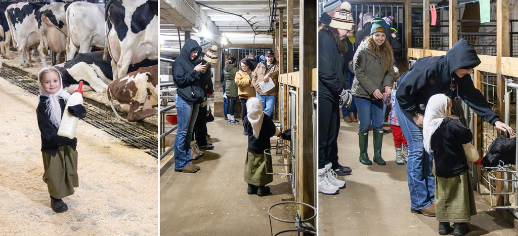 The whole event is a leisurely walk around the barn during chore time, culminating at a table with whole milk, chocolate milk and homemade Christmas cookies.