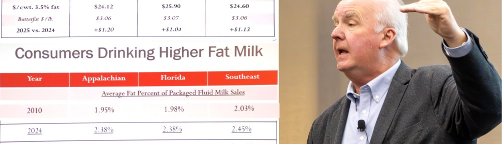 “Additionally, consumers are also drinking higher fat milk,” said Covington, calculating the average fat percentage of Class I sales in the three Southeast Orders rose from 1.95% in 2010 to 2.4% in 2024.