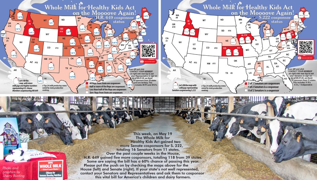 In the previous session of the Pennsylvania State Senate, Sen. Brooks’ bill on whole milk had been reported out of the State Senate Ag Committee but never made it to the Senate floor for a vote. In the House, Rep. John Lawrence’s companion bill was passed by the full House last session, but was never approved by the Senate before the legislative session ended in Dec. 2024. At that time, there were murmurings of USDA canceling state school lunch reimbursements or other state funds from mighty USDA after a certain general farming publication mentioned the stance of Vilsack’s USDA in terms of the legality or illegality of such a state measure.