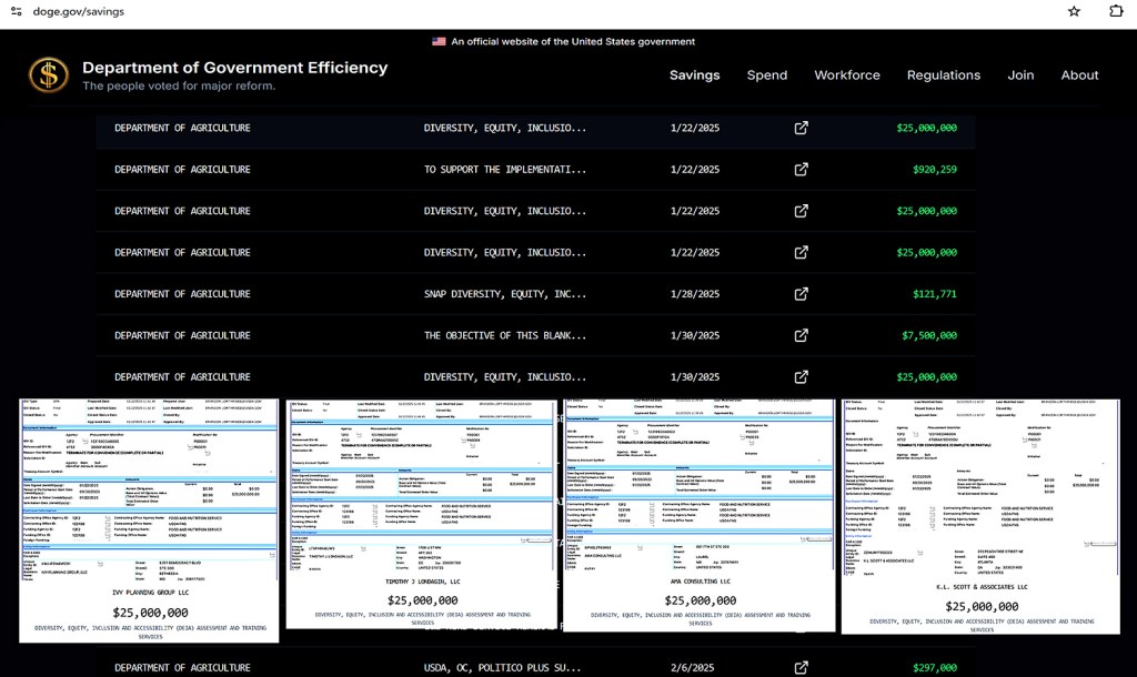 In fact, we received a follow up email the next morning (Feb. 19) with additional information and a link to https://doge.gov/savings, where all terminated contracts throughout all federal agencies will be updated twice a week. USDA ranks 5th in the top 10 federal agencies in amount of savings as of Feb. 18.