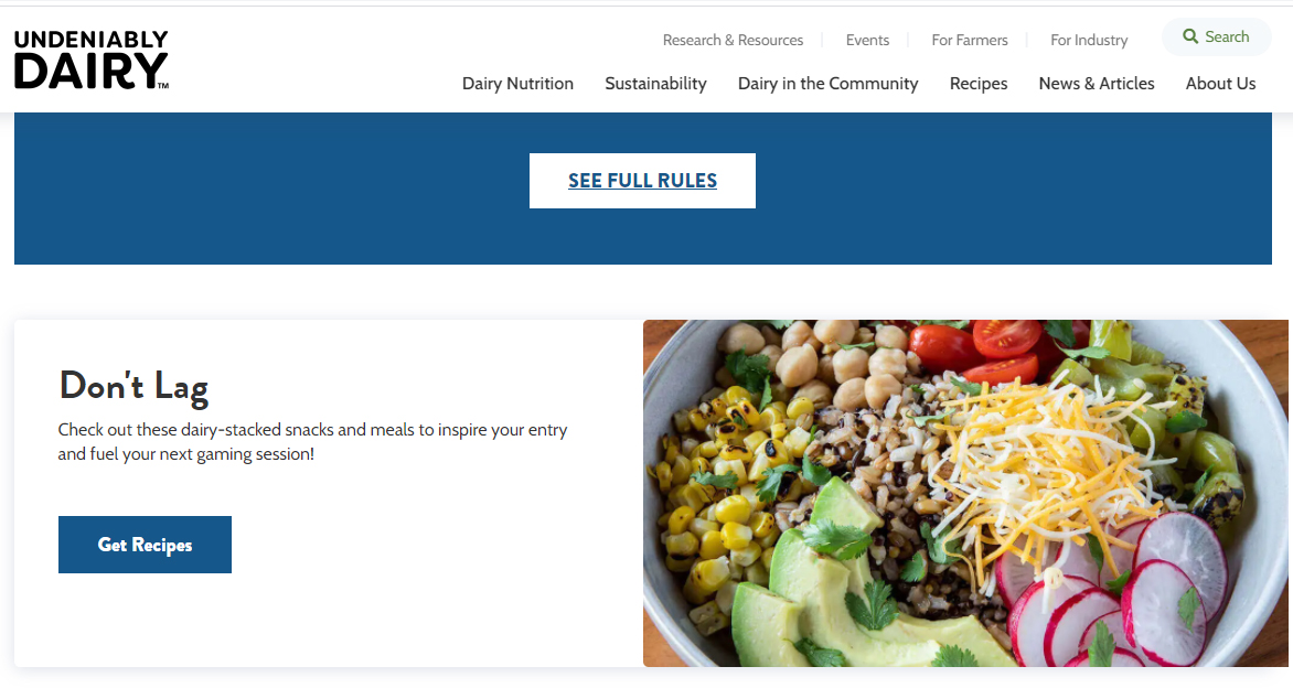 “Beat the Lag” is themed around “dairy-based foods and beverages giving gamers an energy boost or a tasty pick-me-up after a long stretch of gaming,” said Warden. “We’re not going to tell them what to eat, we’re letting Jordan Maron (Captain Sparklez) and Rosanna Pansino, a gamer and culinary influencer, get gamers suggesting the ideas in ways they can relate to.”