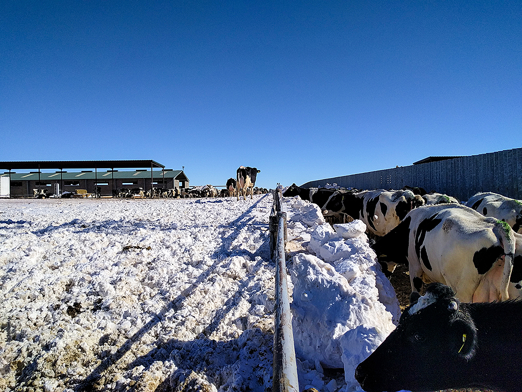 “We change our teat dip when it’s this cold, for extra moisturizing to the skin,” Cody explains. “We also adjust the cow diets to keep our cows in a positive energy balance as they burn more energy to maintain themselves during weather extremes.”