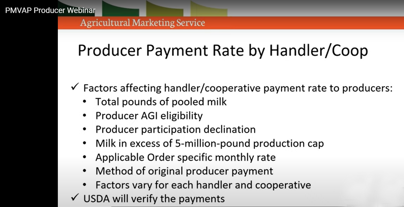 He showed a bar-graph depicting the decline in the share of total U.S. production participating in federal or state revenue sharing pools. Using estimates of California’s pre-federal order mandatory state order, the percentage of U.S. milk production that was pooled exceeded 80% in 2018. In November of 2018, California became a federal order. Pooled volume vs. total production fell to just over 70% in 2019, the first year the new Class I mover formula was implemented. In 2020, during the pandemic, pooled volume fell to just over 60% and ticked a few points lower to 60% in 2021.