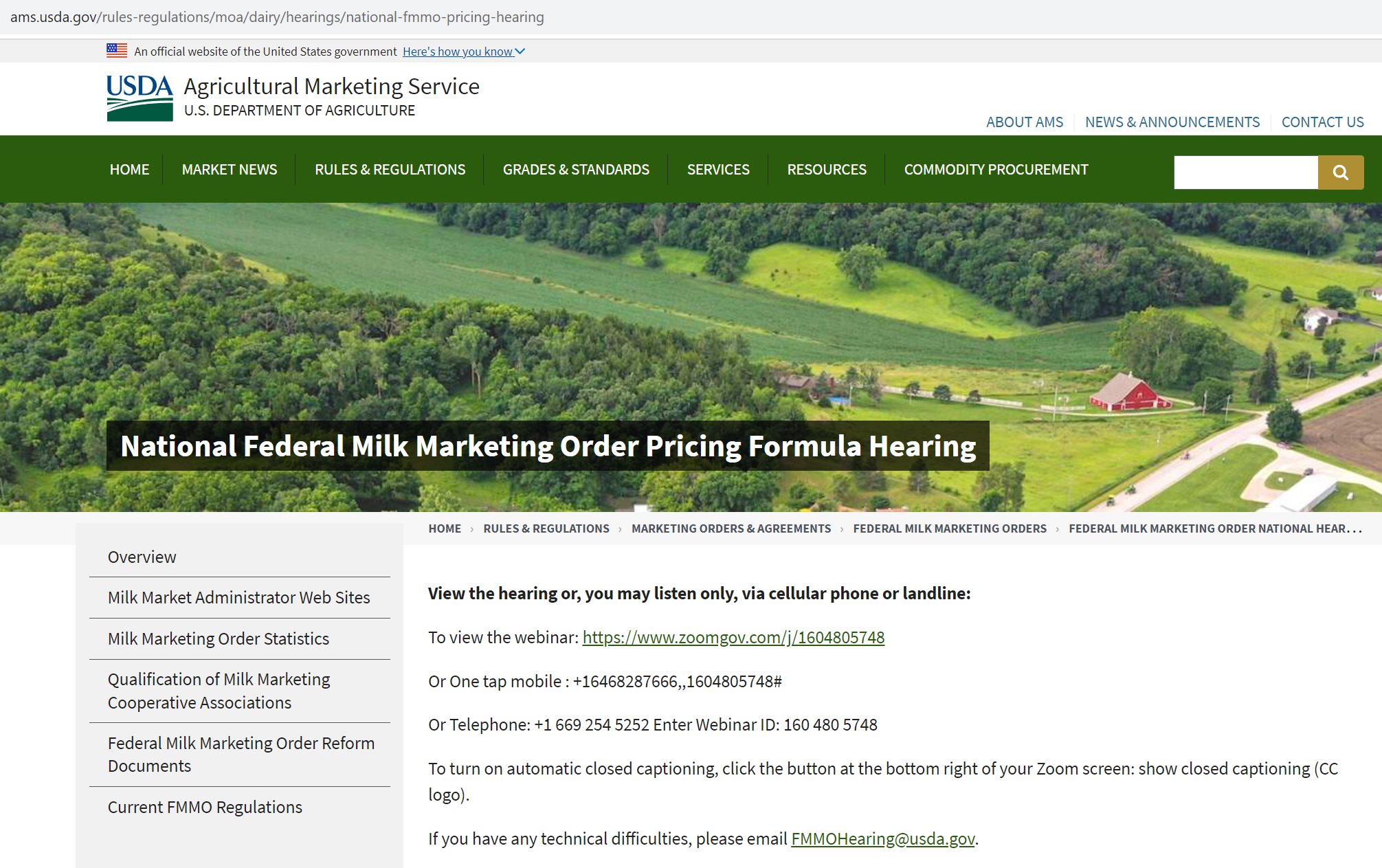 The hearing schedule will proceed in this order to consider accepted proposals under these categories, according to USDA: