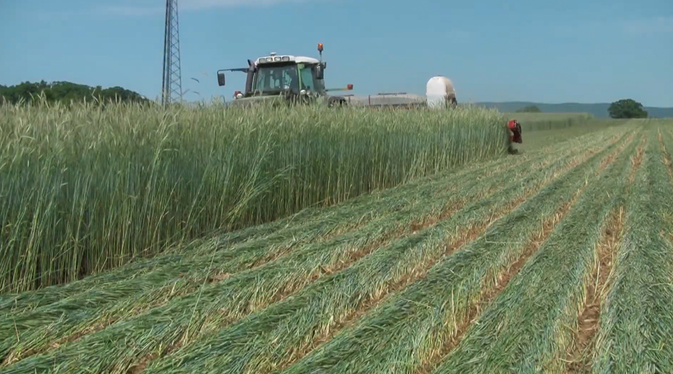 The wheat is grown as a cash crop but it has been fed too. The barley he harvests is a supplement for dry corn, depending on the year. He likes to grow these crops because they make good straw to bed the cows.