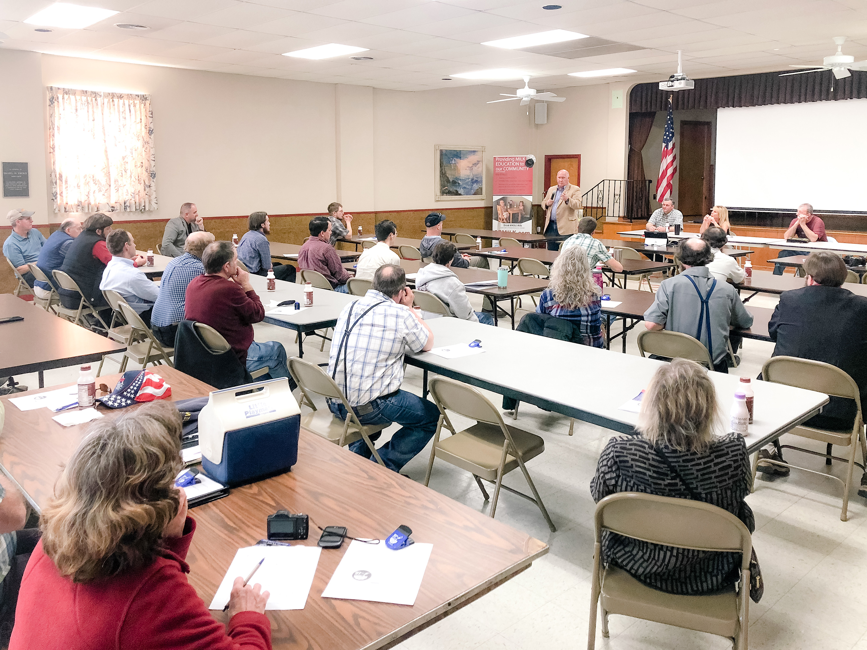 That got a laugh from the group sitting in the rural town fire hall of northern Lancaster County.