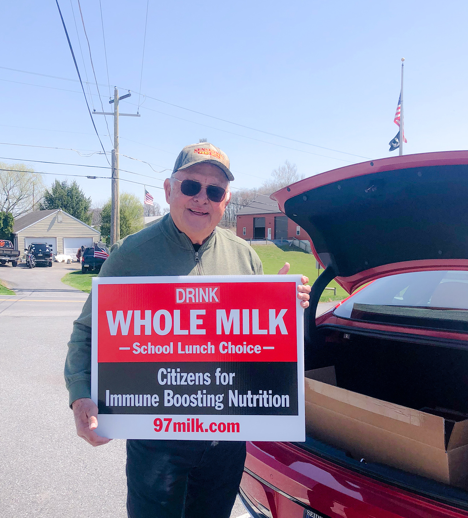 In fact, Rep. Thompson took home and now proudly displays a “Drink Whole Milk – School Lunch Choice – Citizens for Immune Boosting Nutrition” yard sign in his front yard.