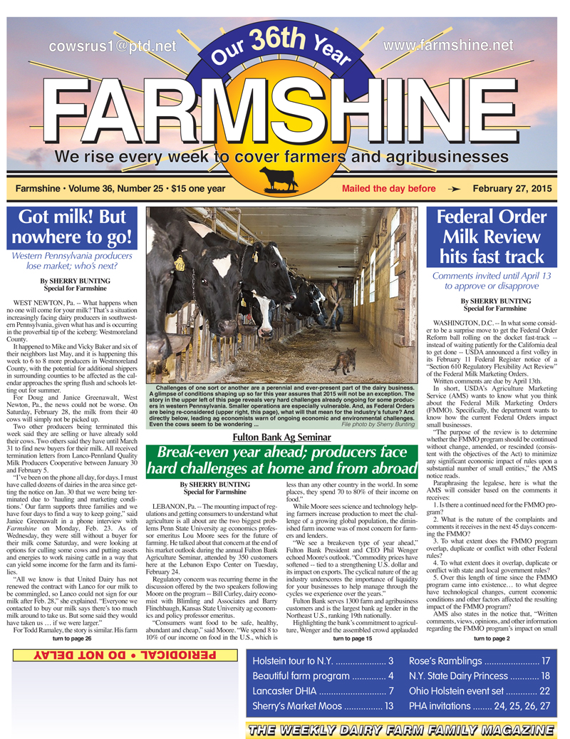 By Sherry Bunting, Farmshine, Feb. 27, 2015