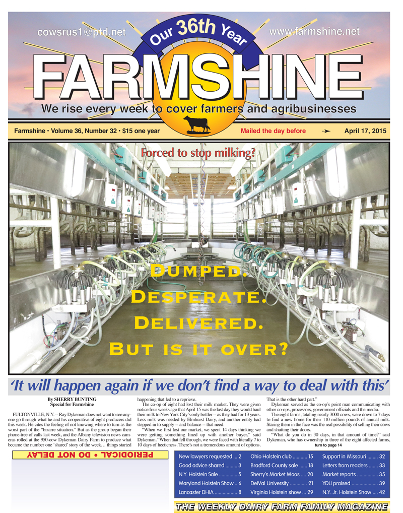 FULTONVILLE, N.Y. — Ray Dykeman does not want to see anyone go through what he and his cooperative of 8 producers did this week. He cites the feeling of not knowing where to turn as the worst part of the “bizarre situation.” But as the group began their phone-tree of calls last week, and the Albany television news cameras rolled at the 950-cow Dykeman Dairy Farm to produce what became the number one ‘shared’ story of the week… things started happening that led to a reprieve.
