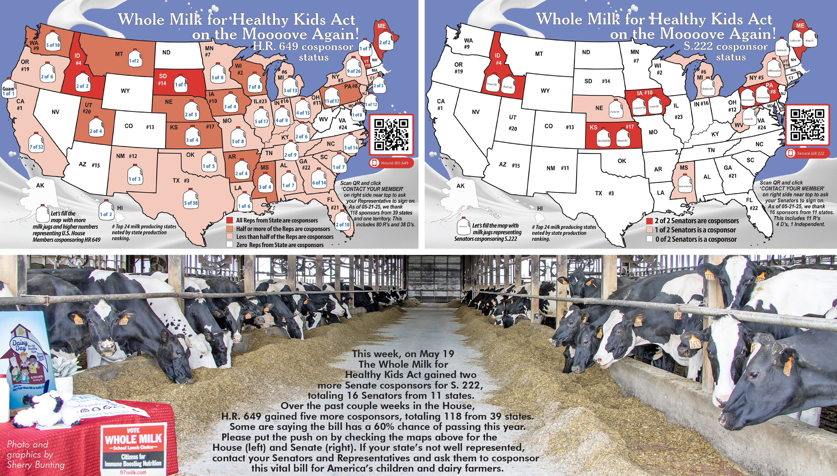 Looking ahead, there is good news for the farm bill and whole milk bill in the new 2025-26 legislative session. The House Ag Committee will continue under Rep. GT Thompson’s leadership as Chairman. On the Senate side, whole milk friendly Boozman will chair the Ag Committee. With Stabenow retiring, Sen. Amy Klobuchar (D-Minn.) will serve as Ranking Member, and she previously signed on as a Whole Milk for Healthy Kids Act cosponsor in March 2024.