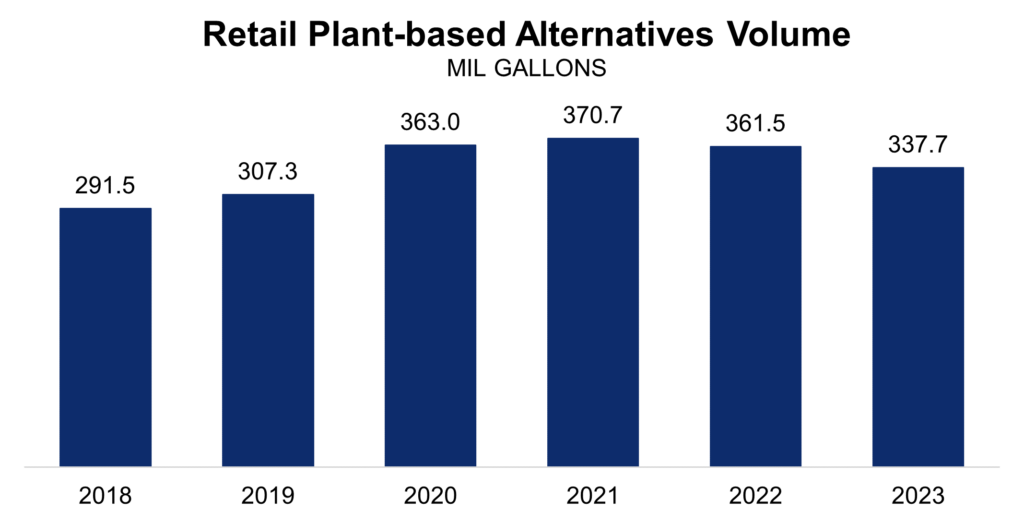 By comparison, plant-based beverage sales volume in 2023 was a fraction of 1% (0.8%) the size of real milk sales volume.