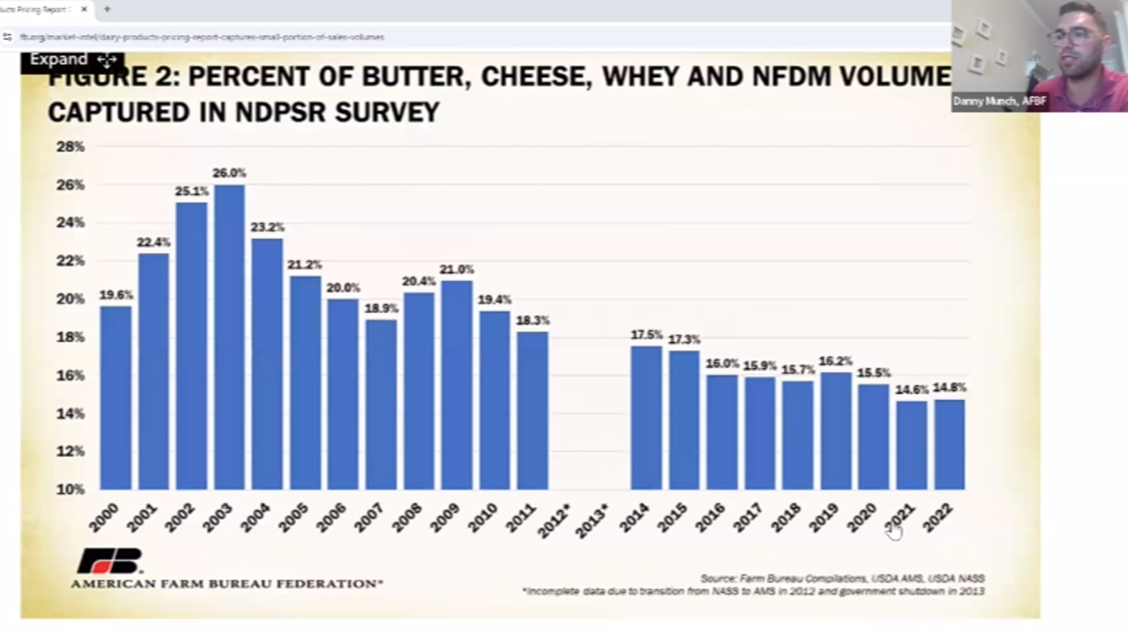 Munch noted that only 66% of the plants on the price survey actually participated in the voluntary cost survey used by USDA to set the proposed new make allowances. AFBF, ADC and other organizations have been on record opposing make allowance increases until mandatory, audited surveys are conducted by USDA.