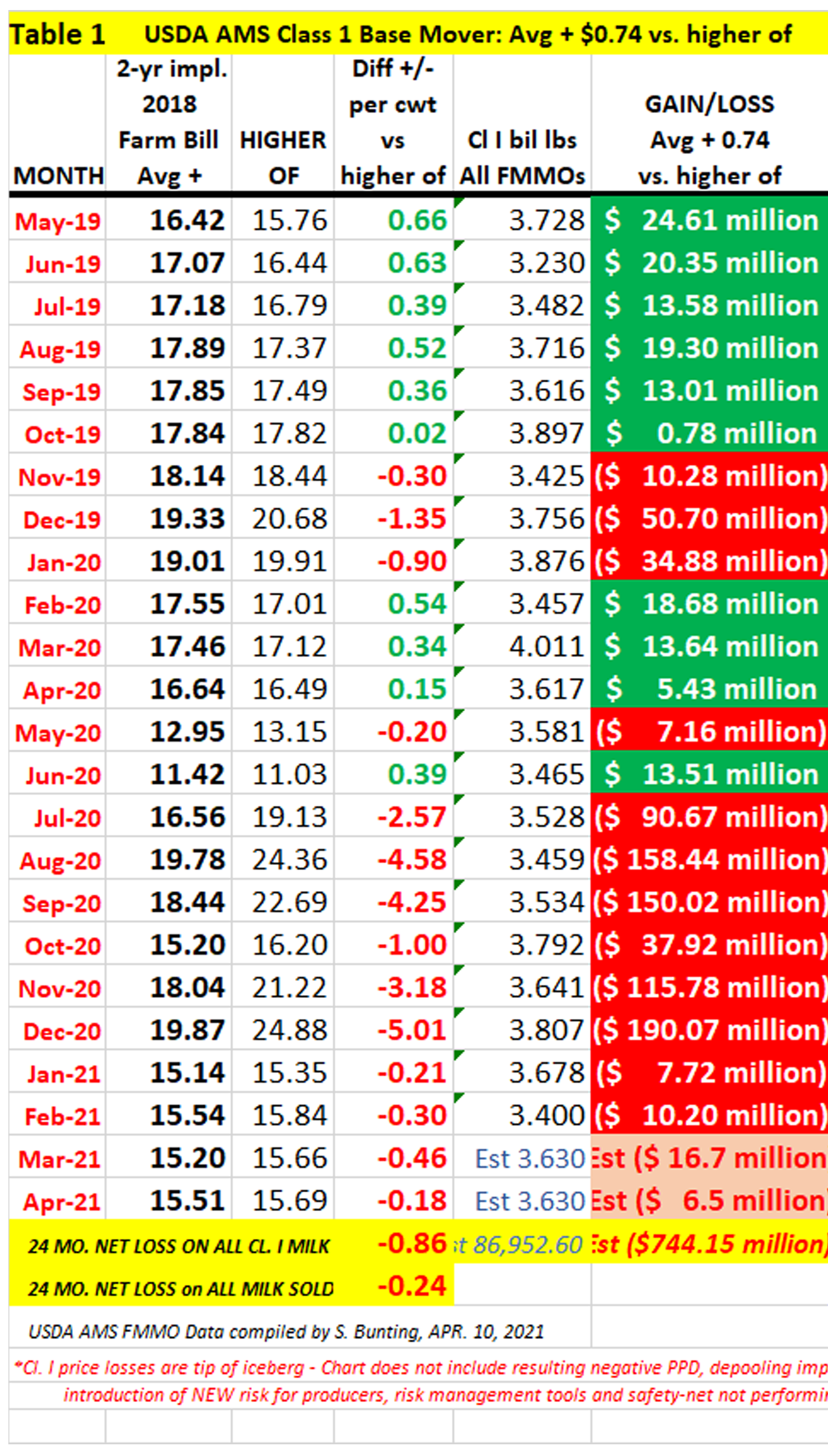 — created NET losses for producers of $751 million in Class I value (May 2019 through April 2021), and contributed to a net loss of over $3 billion in negative PPDs and depooling,