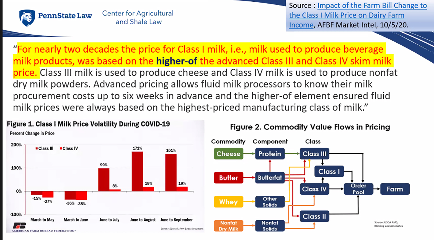While the Congress has always said it does not want to set precedent for making milk price formula changes outside of the vetting process of an FMMO hearing, and while the Congress rebuffed numerous requests for a national FMMO hearing in every Farm Bill since 2008, the Congress did go ahead and set that formula-changing precedent in 2018 by passing language in the Farm Bill to change the method for determining the Class I mover from the ‘higher of’ Class III or IV to ‘average-plus’… and here we are.