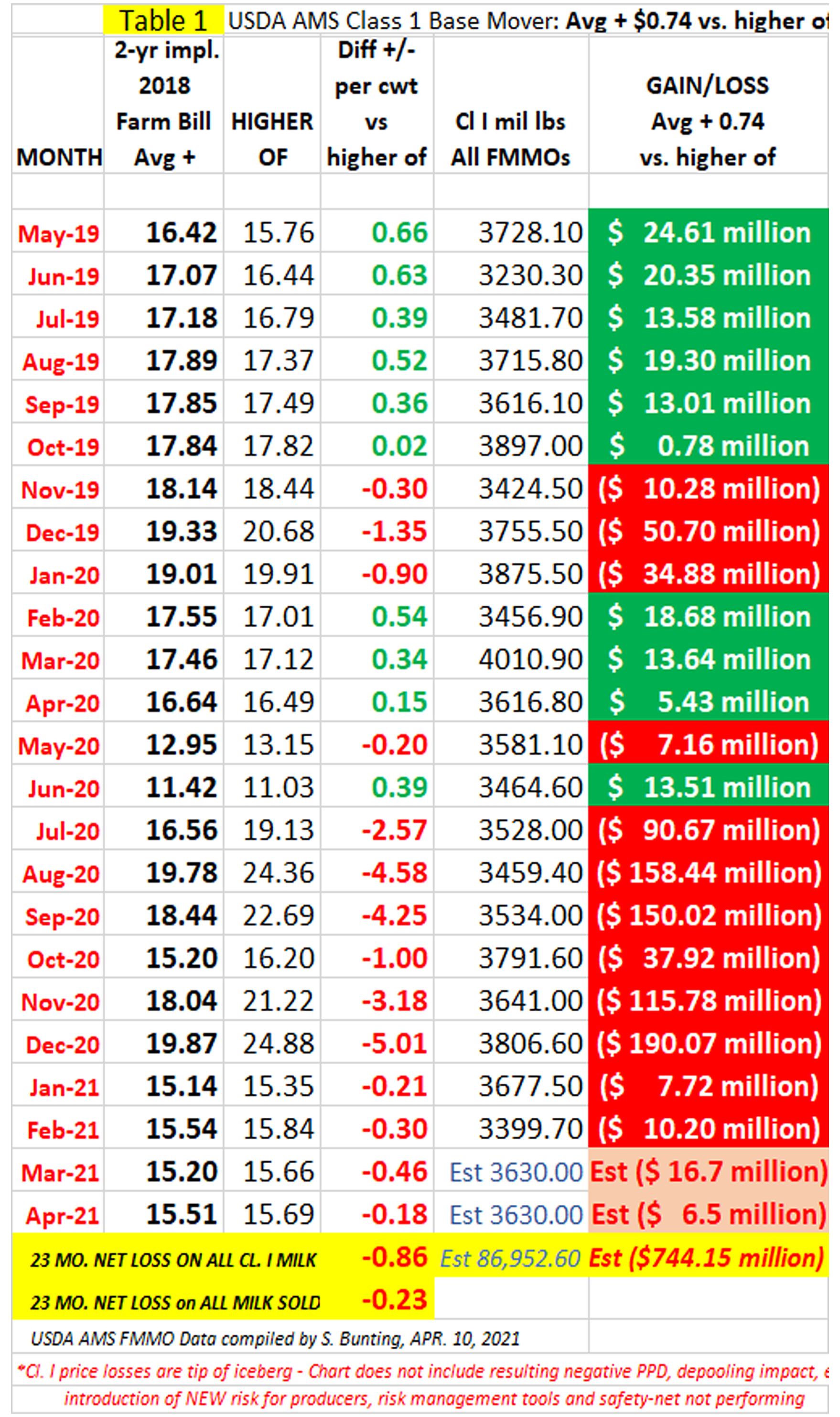 Northeast producer blend price losses are estimated to be $1.10/cwt, net, from May 2019 through April 2021. (Calculations are being done for other FMMO regions so stay tuned.)