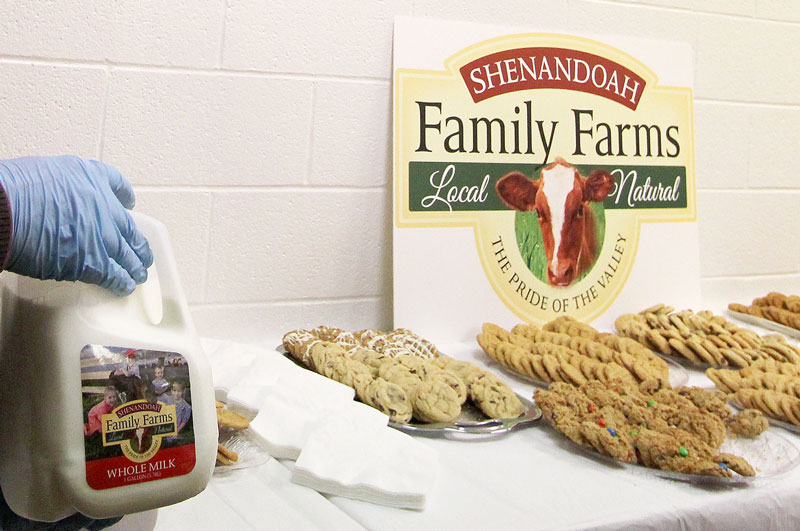 Shenandoah Family Farms milk and chocolate milk were served with homemade cookies at the tour of the creamery Tuesday. Photo by Sherry Bunting